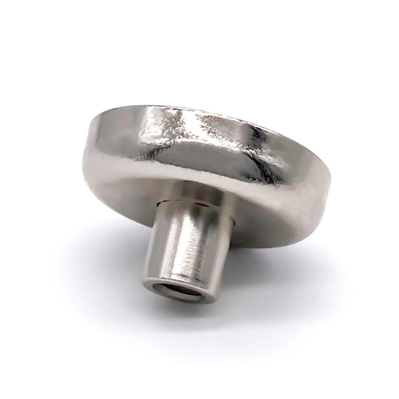 These pot magnets have screw bush hole,can for M3,M4,M5,M6,M8 M10 or customized.They need to fastened with an male thread or hook.As the metal pot to change the magnetic flux to make the force become strong,so even with a small size,but the force is very strong.They are suitable for strong and quickly removable fasten no need drilling.